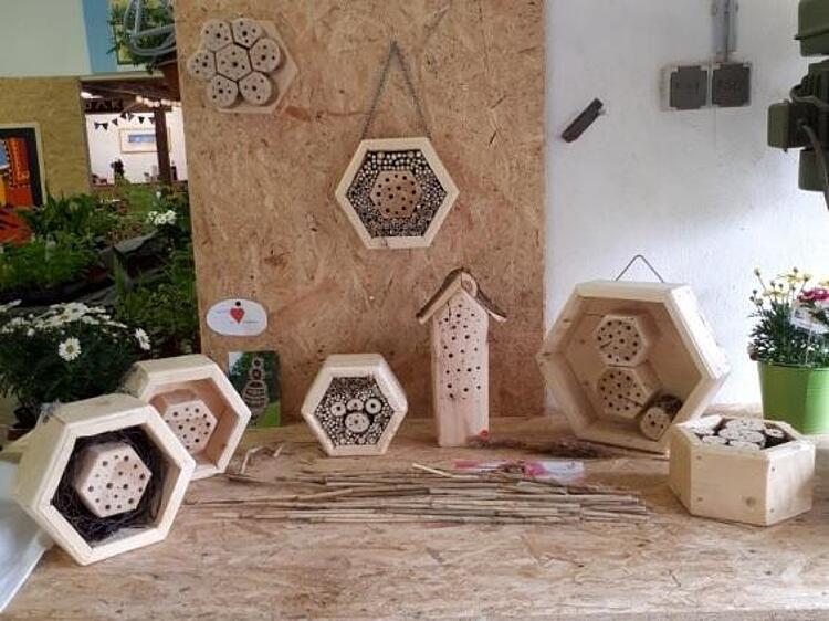 Insektenhotels, Nistkästen für Stare, Meisen und „Mehrfamilienhäuser“ für Spatzen, selbstgemachte Marmelade und Met und handgefertigte Bienenwachskerzen konnten erworben werden.