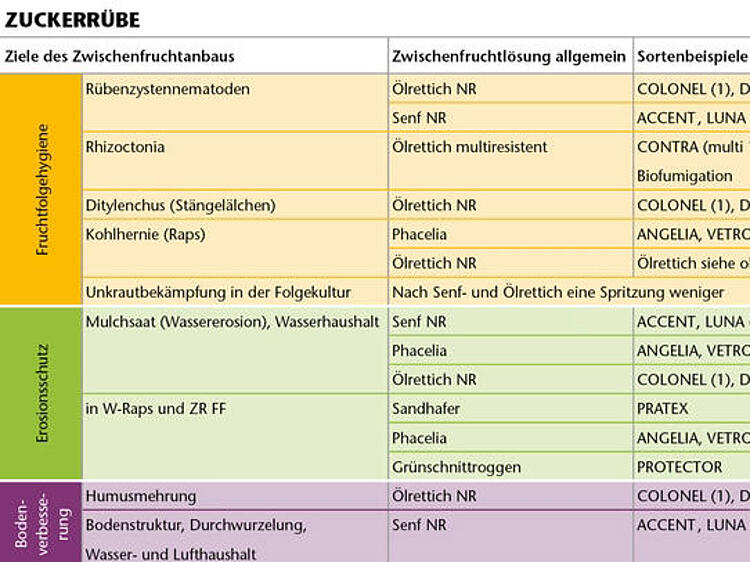 Besonders in Betrieben mit hohem Zuckerrüben- oder Kartoffelanteil und erosionsgefährdeten Flächen sind Zwischenfrüchte zu einem festen Bestandteil in der Fruchtfolge geworden. Ihr Potenzial, Schäden durch bodenbürtige Nematoden und Viren zu vermeiden, ist enorm. Aber nicht alle Zwischenfrüchte sind gleich gut zur Bekämpfung bestimmter Erreger oder zum Einsatz in Mulchsaatsystemen geeignet. Michaela Schlathölter erläutert den effektiven Einsatz von Zwischenfrüchten.