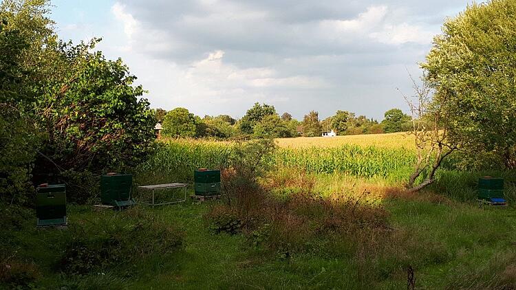 Früher als sonst sind die Felder abgeerntet und zum größten Teil auch schon wieder eingesät. Schon jetzt kann man sehen, wo im nächsten Jahr Raps stehen wird. Hier in Schleswig- Holstein ist es die Hauptnahrungsquelle für die Honigbiene.