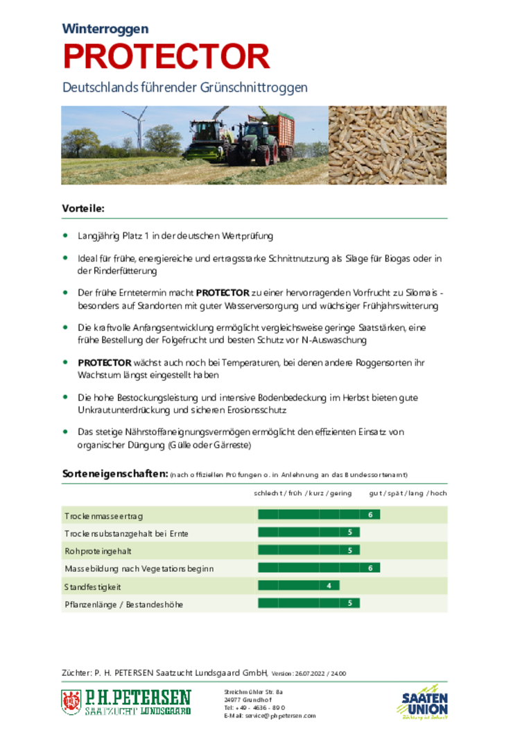 Datenblätter zu Sorten und Mischungen