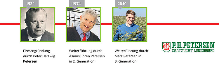 | 1969 | Eintritt von A. Sören Petersen in die Firma. Zukauf der Firma Schneider. Neuer Schwerpunkt: Züchtung und Saatgutproduktion von Zwischenfrüchten. |