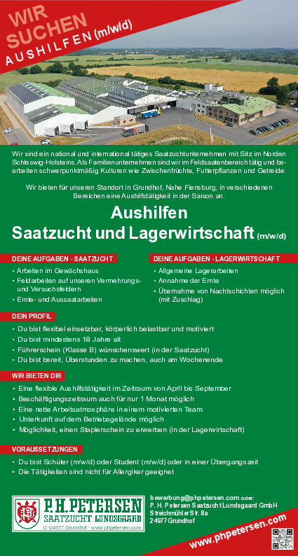 • Führerschein (Klasse B) wünschenswert (in der Saatzucht)