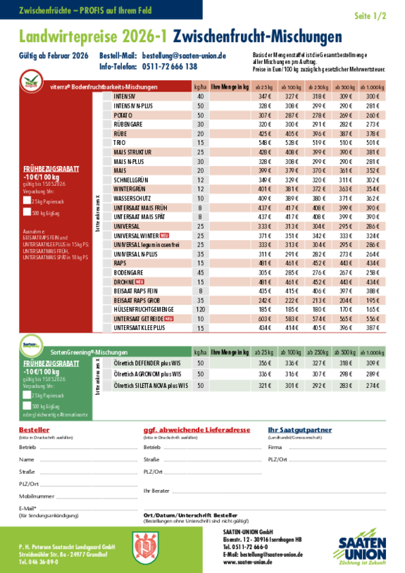 Zu jeder Sorte und Zwischenfrucht-Mischung stellen wir Ihnen ein pdf-Dokument mit den entsprechenden Eigenschaften zum Download zur Verfügung. Dieses befindet sich ganz unten auf der jeweiligen Seite.